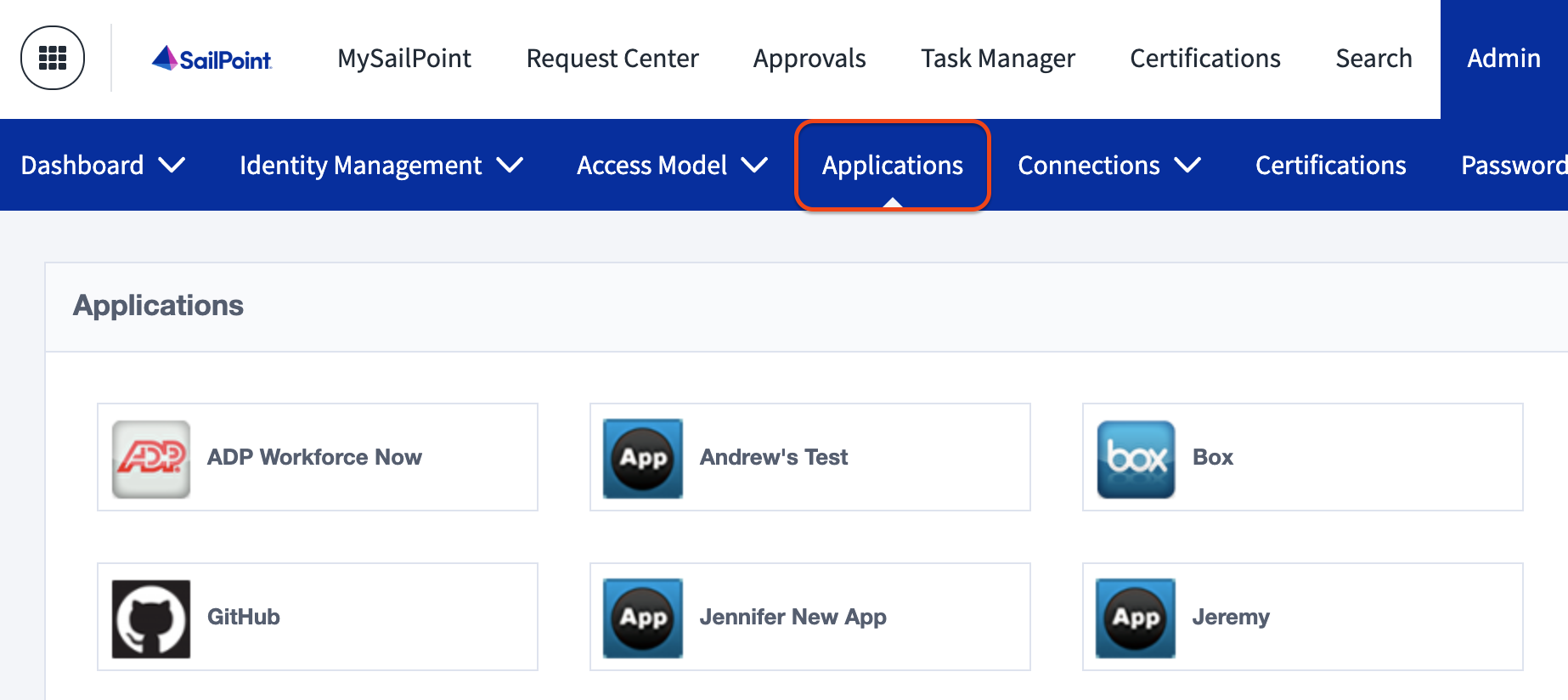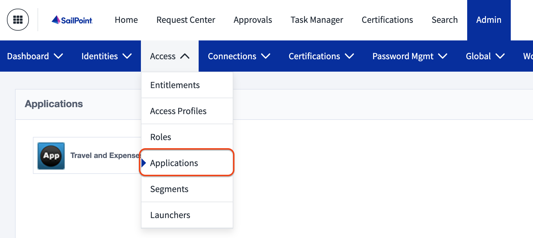 The Applications tab has been moved under the Access Model menu to better align with how Applications represent access. You can now find Applications alongside Entitlements, Access Profiles, and Roles.