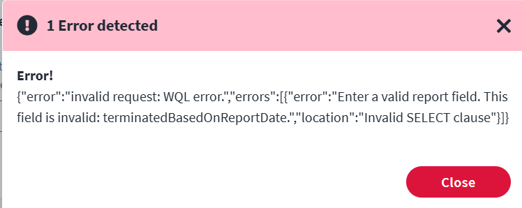 If terminatedBasedOnReportDate is not needed → Remove the field from the attribute mapping or schema in ISC.