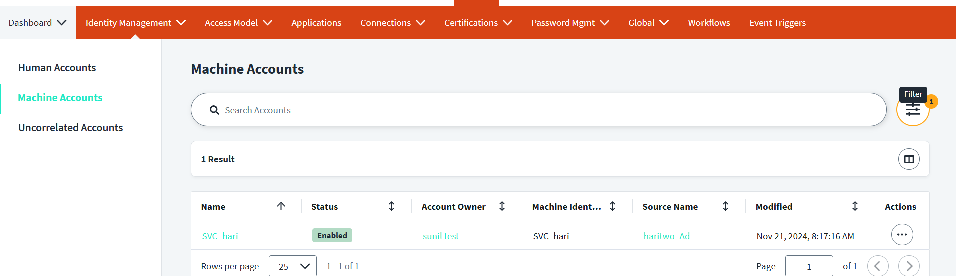 @piyushdiwani you view it from UI under machine accounts by filtering from sources.However for report it would be better if you a machine account dummy certification and select the source it should give you all the machine accounts details.