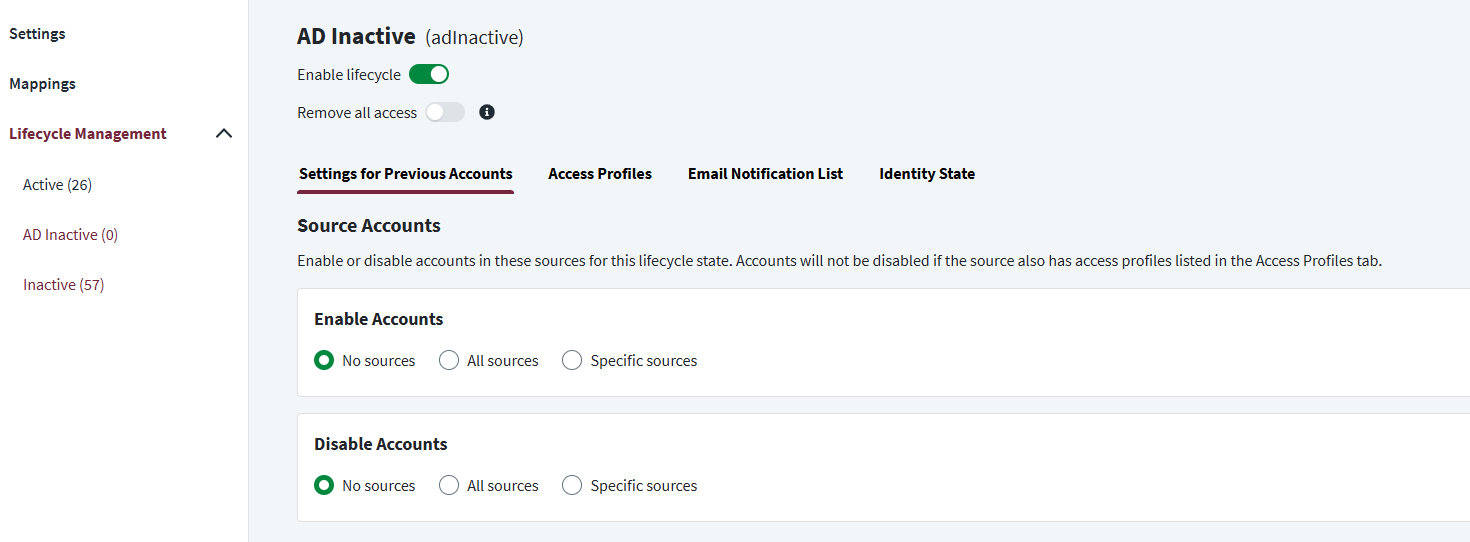 Below is the provisioning configuration. It was not setup in our Sandbox environment so I set it up to mirror how it was setup in our production. I keep setting the identitystate to null but it keeps reverting back to Active in the Sandbox