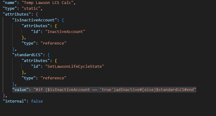 #if ($estatus == ‘T1’ && $isInactiveAccount == ‘true’)inactiveADDisabled#elseif($isInactiveAccount == ‘true’ && $estatus != ‘T1’ )$adInactive#else$standardLCS#end