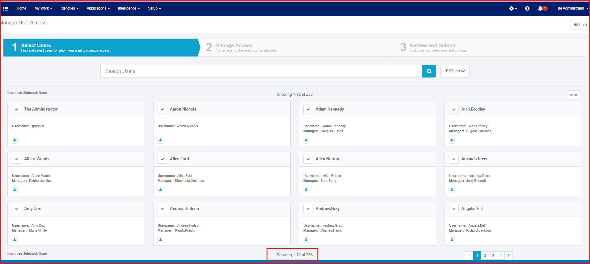 On the Manage User Access page under Quicklinks, we currently have the ability to select users and either Add Access or Remove Access. However, the page displays only 12 users or entitlements per page.